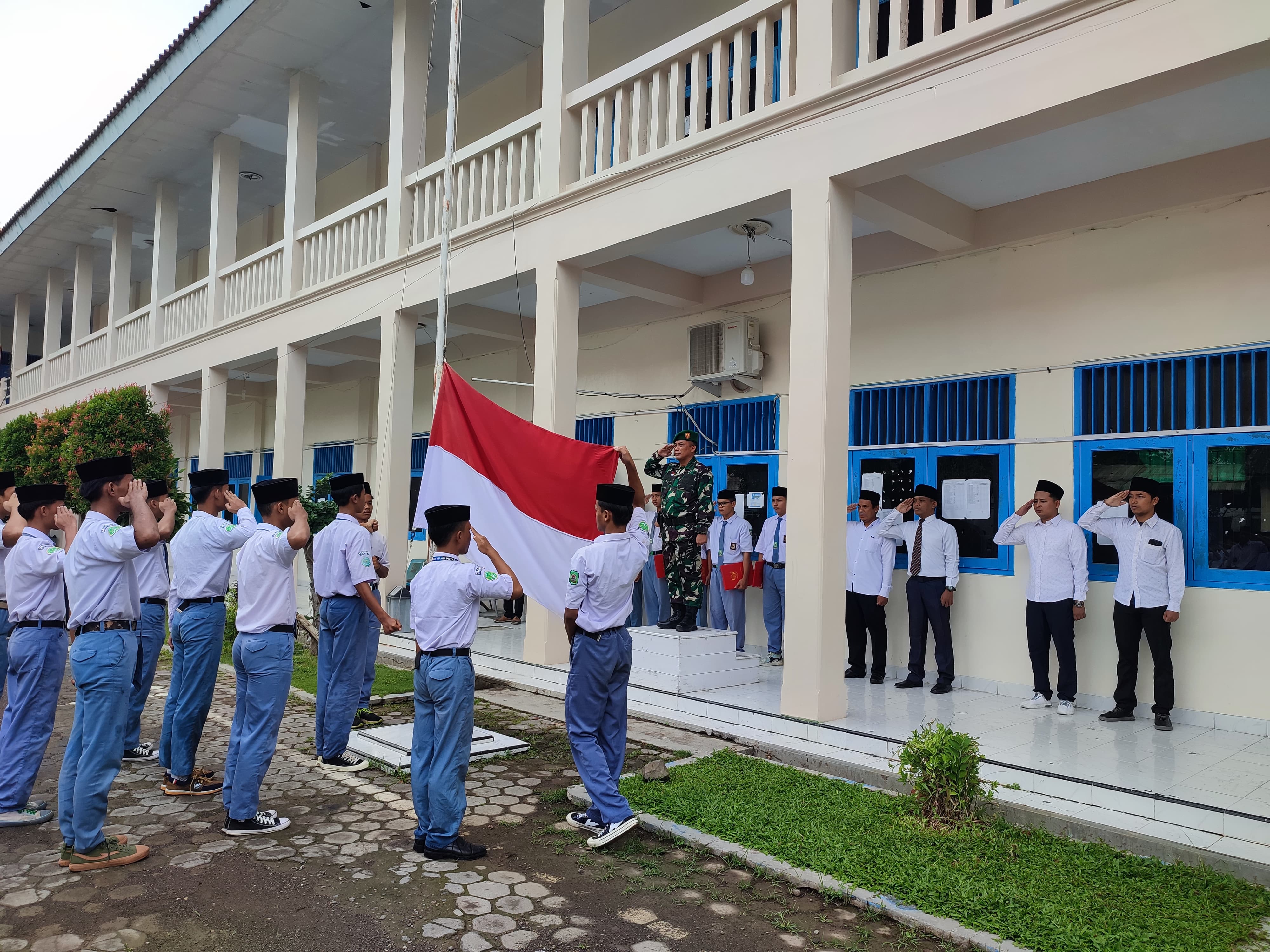 Upacara bendera pada Senin, 22 Januari 2024, sedikit berbeda dari upacara-upacara sebelumnya. Pasalnya, yang bertindak sebagai pembina upacara adalah Bhabinsa Desa Mertapada Kulon.